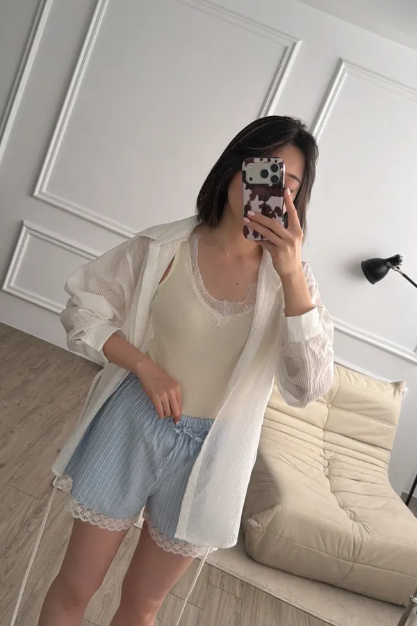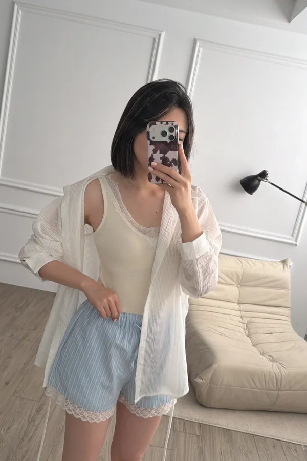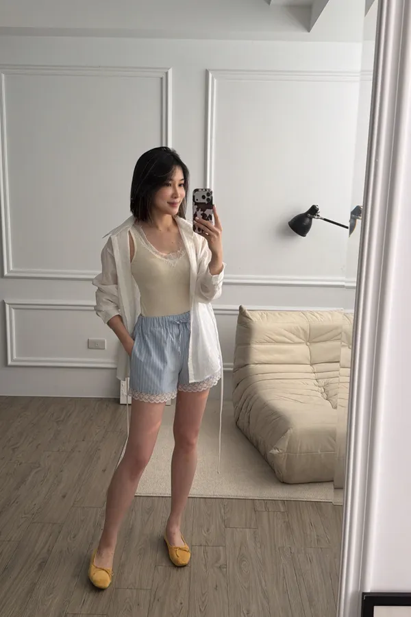 奶油黃蕾絲背心