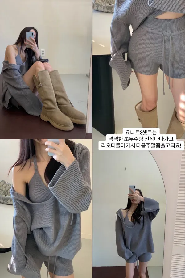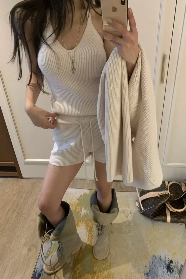 V領針織/背心/短褲 set (兩色)