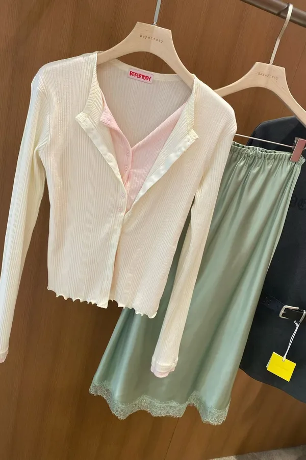 假兩件白粉針織衫