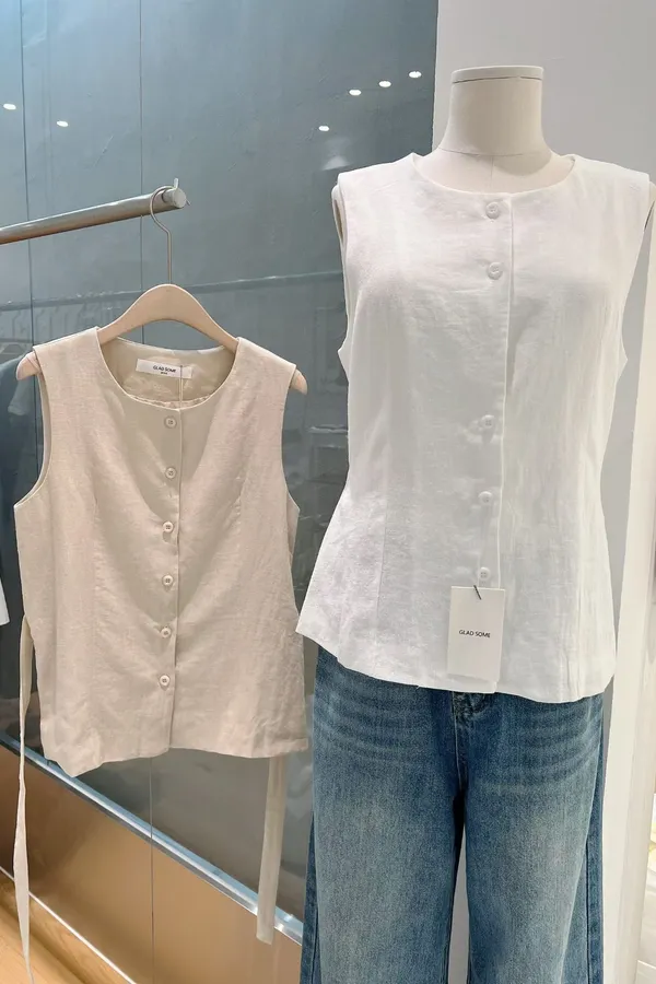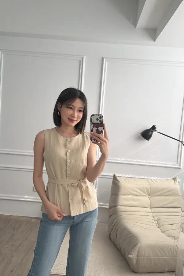 棉麻西裝綁帶背心(兩色)