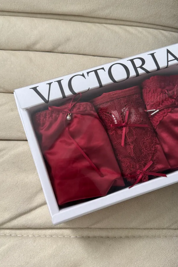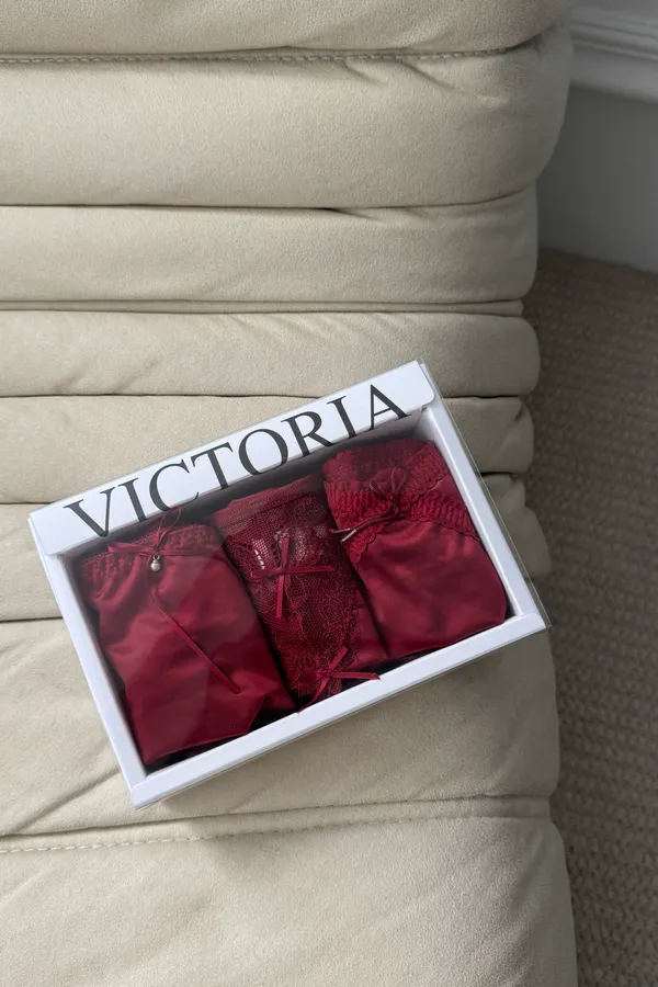 絲綢紅色內褲組合(三件一組)