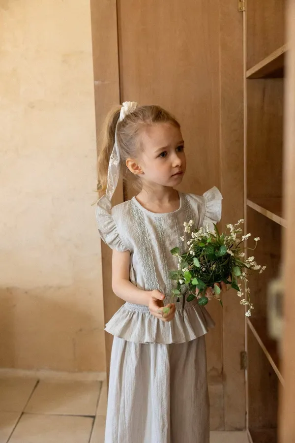 perrobebe荷葉邊上衣長褲套裝