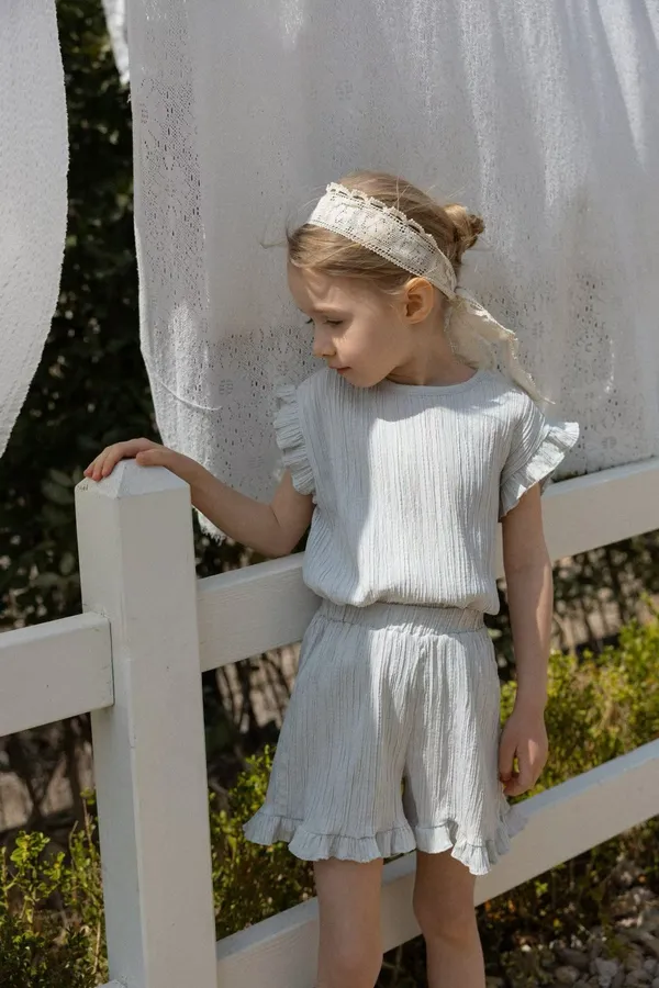 perrobebe荷葉邊上衣短褲套裝(兩色)