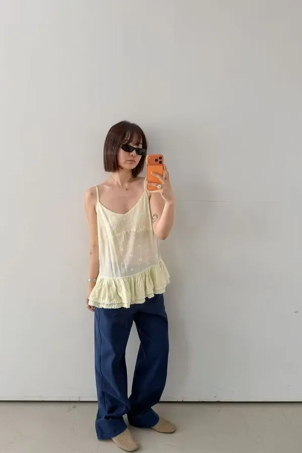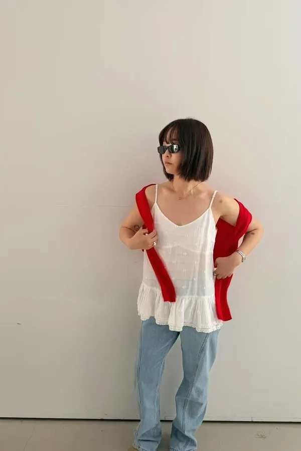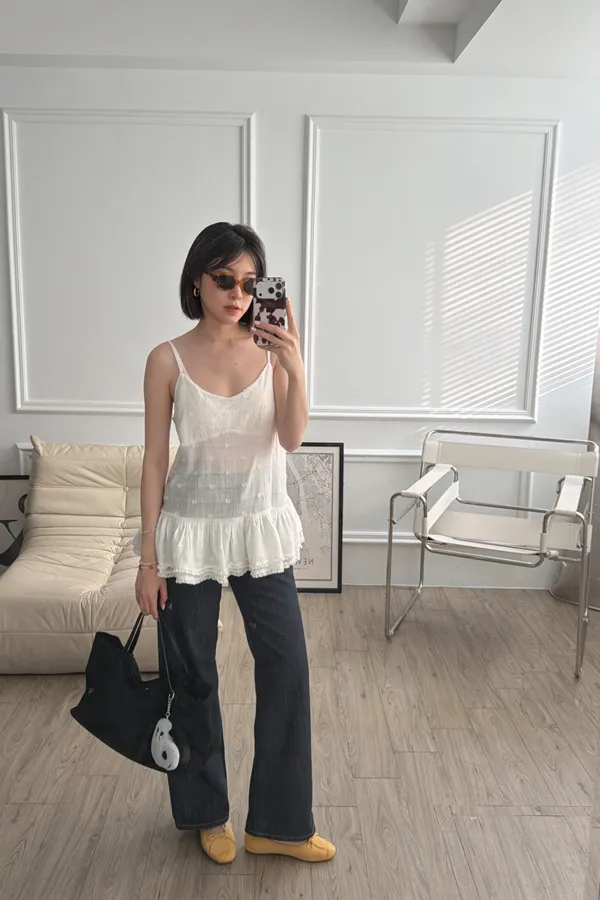 細肩帶小花澎澎背心(兩色)